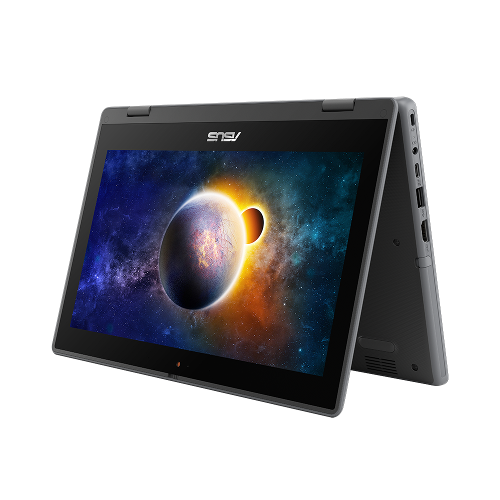 Das ASUS BR1100F verfügt über 2 Kameras: die normale Webcam und eine spezielle, nach außen gerichtete Kamera in der unteren Ecke des Tastaturbereichs - eine ideale Position, mit der auch das Halten im Hochformat kein Problem mehr darstellt.